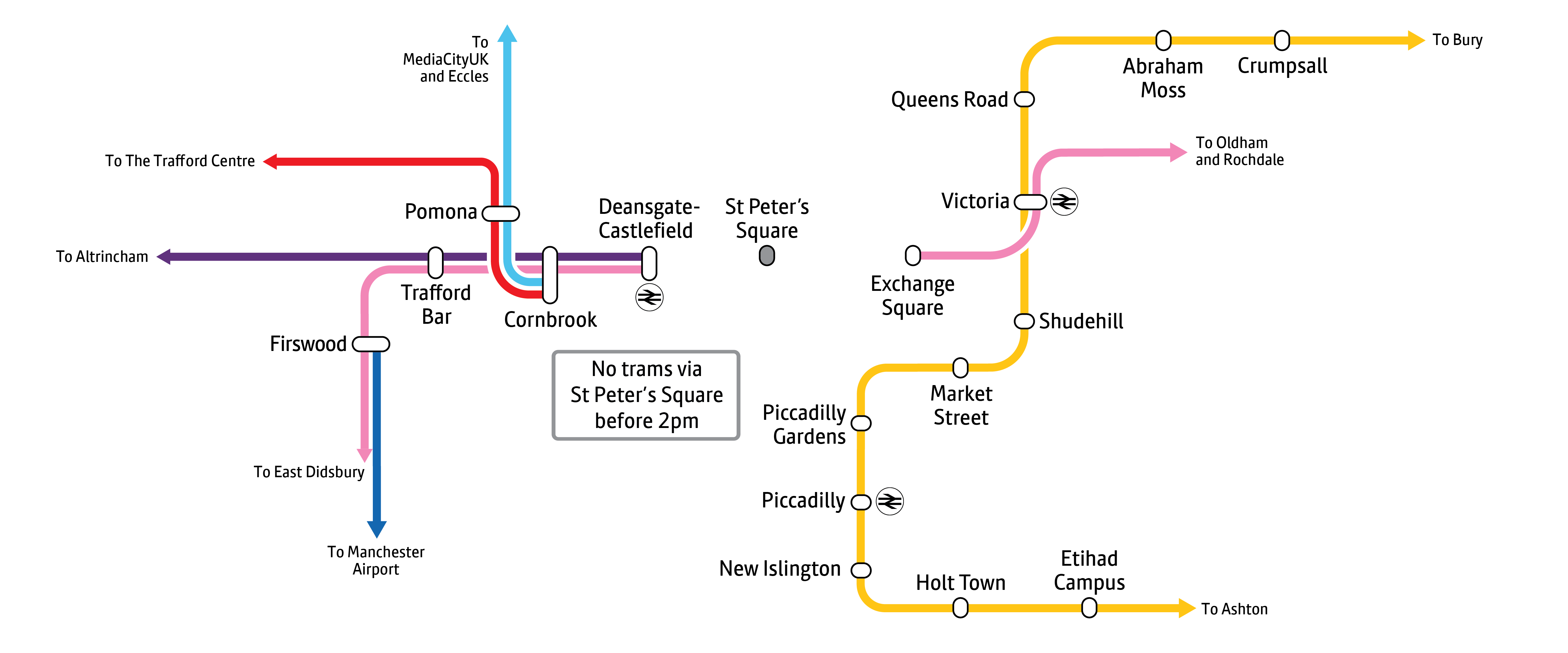 From the start of service until 2pm, no trams will be able to operate through Deansgate-Castlefield and service changes will be in place across the network.