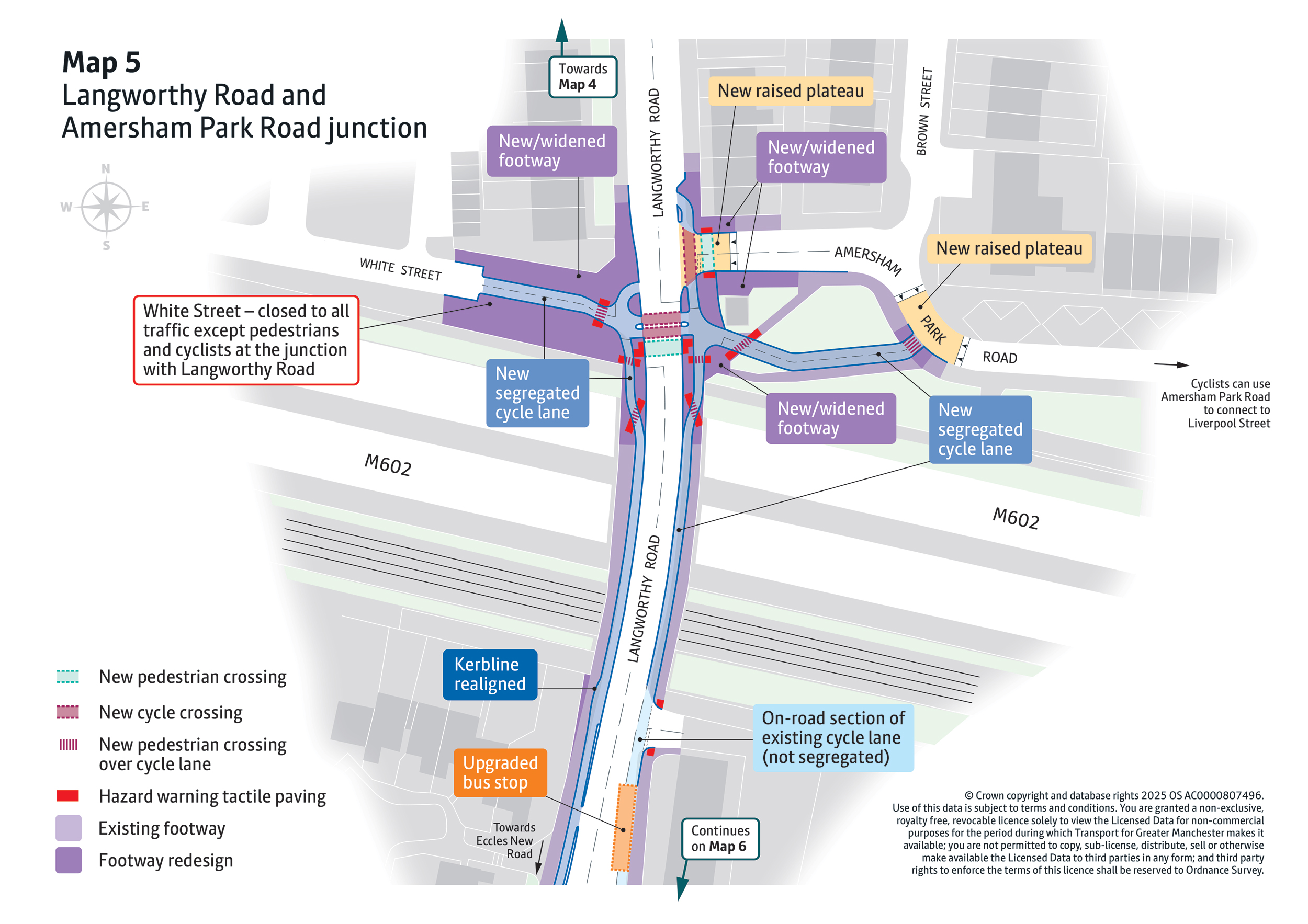 - A new bus only restriction on South Langworthy Road will prioritise buses and trams, improving journey times and making services more reliable. This increased reliability will help address overcrowding on buses using this corridor. Minor adjustments at the Regent Road / M602 / Trafford Road roundabout, including updated signal timings and road markings, will help manage traffic changes and keep vehicles moving smoothly.