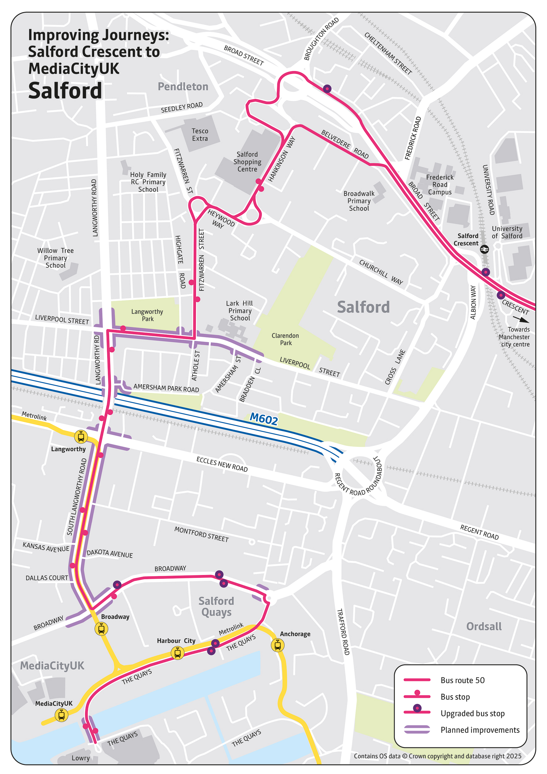 This includes a major scheme to improve the 50-bus route between Salford Crescent railway station and MediaCityUK via Pendleton and Langworthy.