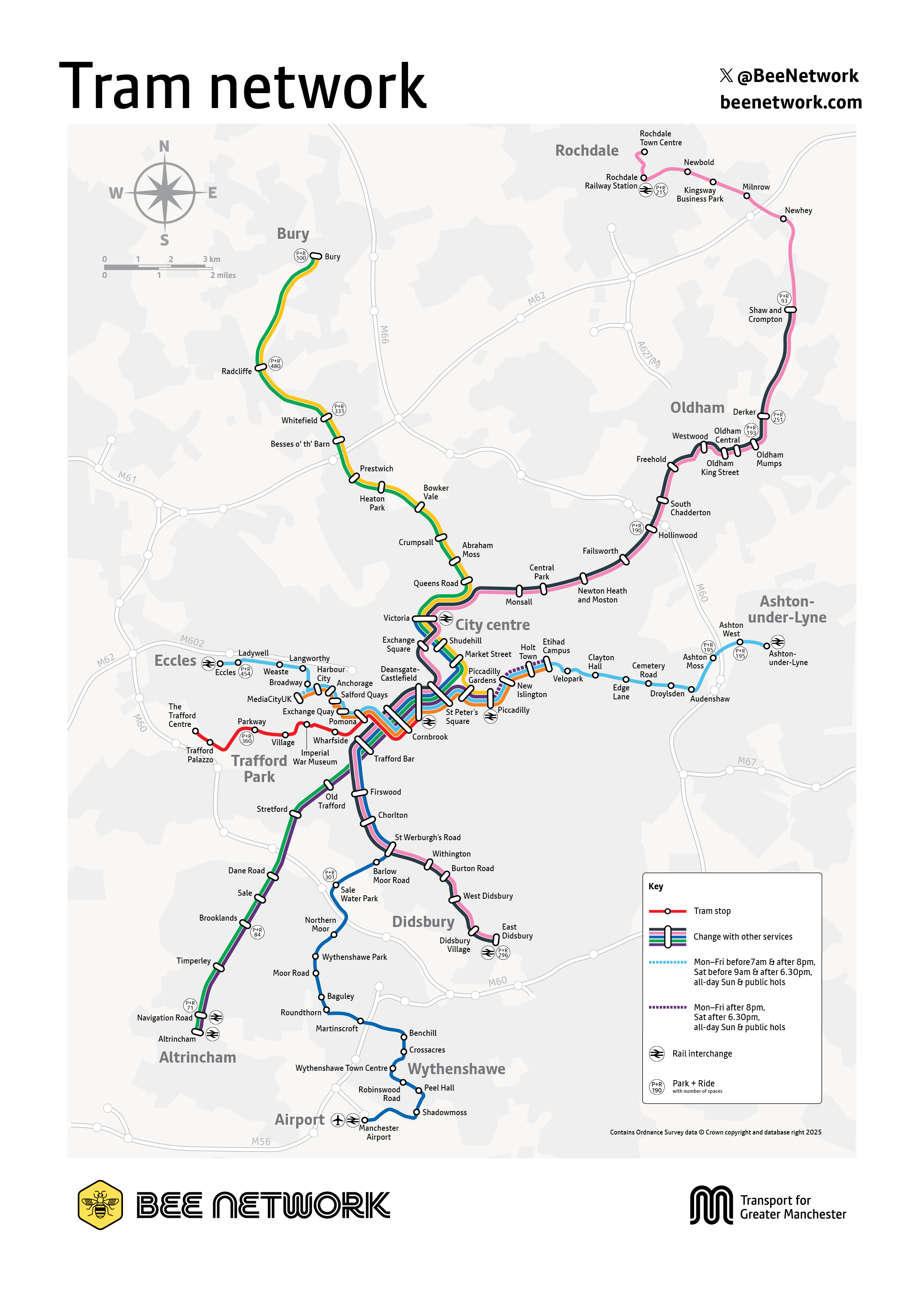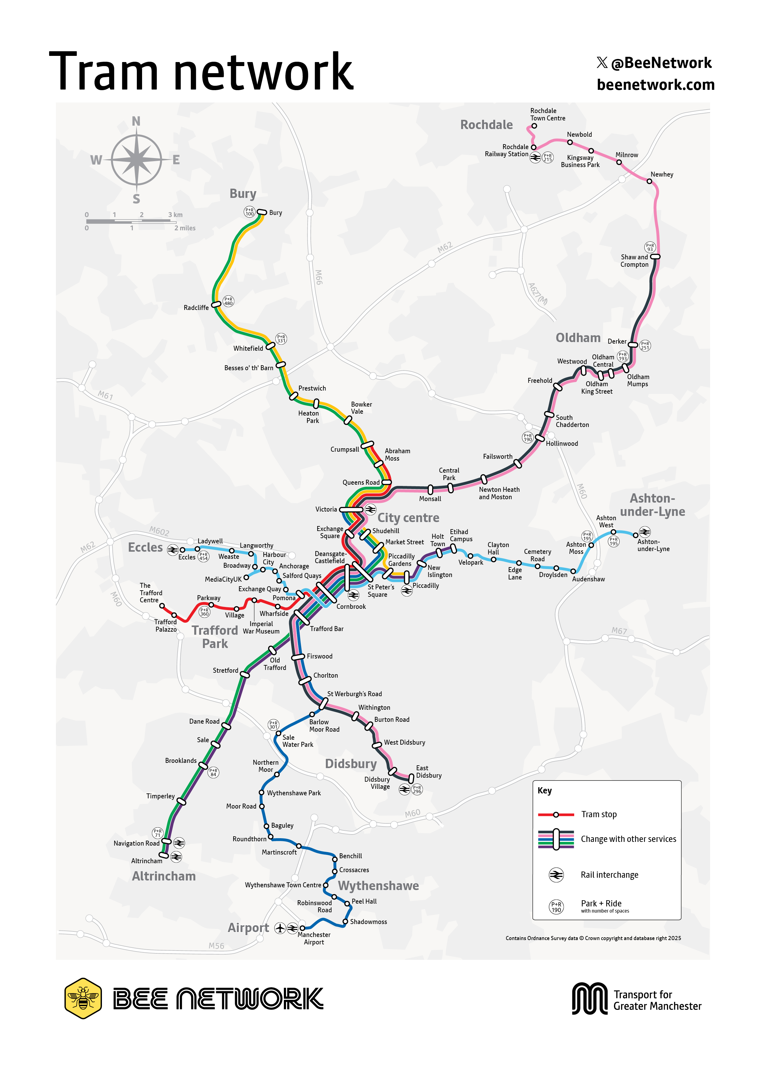 Metrolink geographical map | Bee Network | Powered by TfGM
