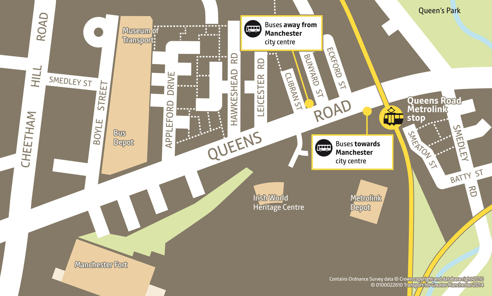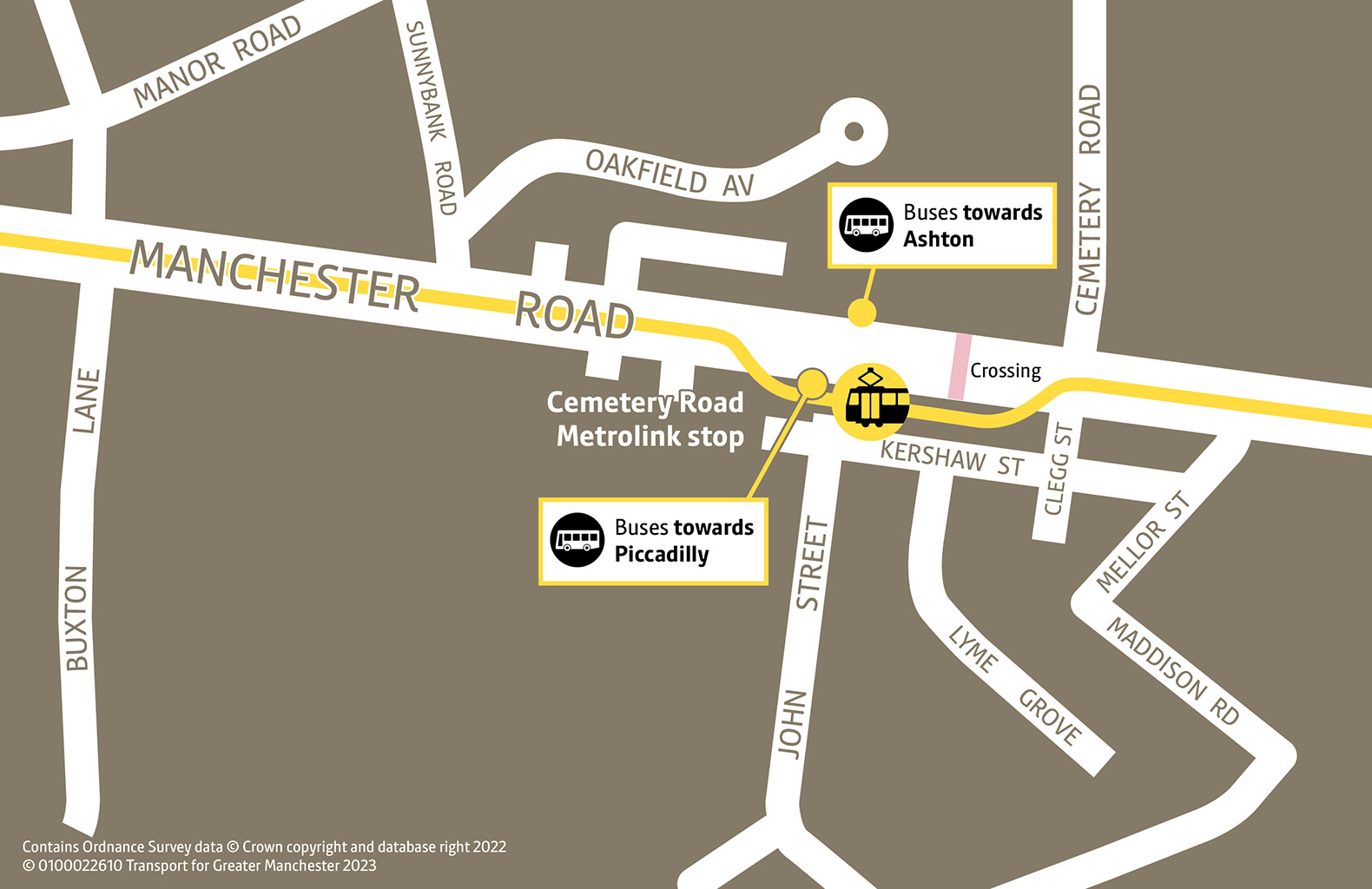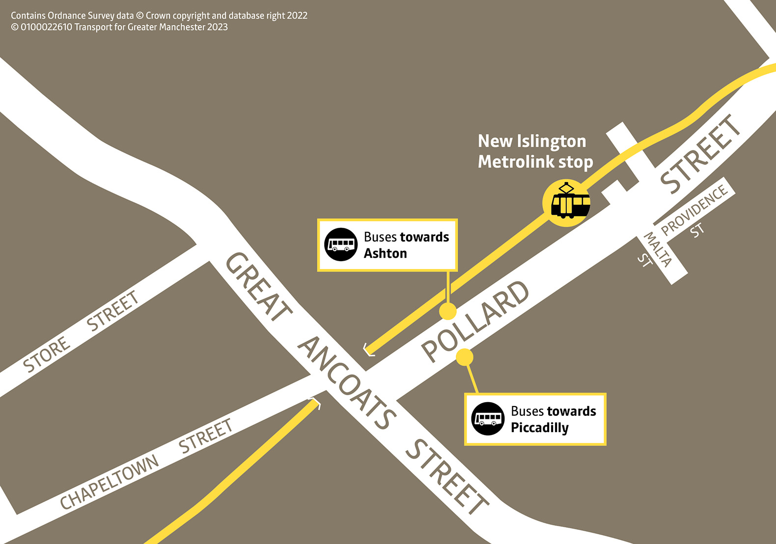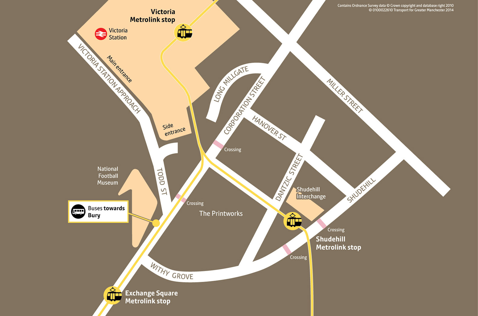 To help you continue your journey, replacement buses from Ashton-under-Lyne will operate to Piccadilly Gardens, whilst buses from Bury will run to Victoria.