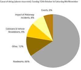 The chart shows the estimated causes of unexpected delay on a sample of roads on Greater Manchester’s Key Route Network.